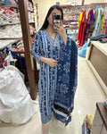 Get festive ready with our new Kurta Pant Or Duppata 3 Piece Sets with beautiful neck Embroidery work Fabric Heavy Pure Cotton