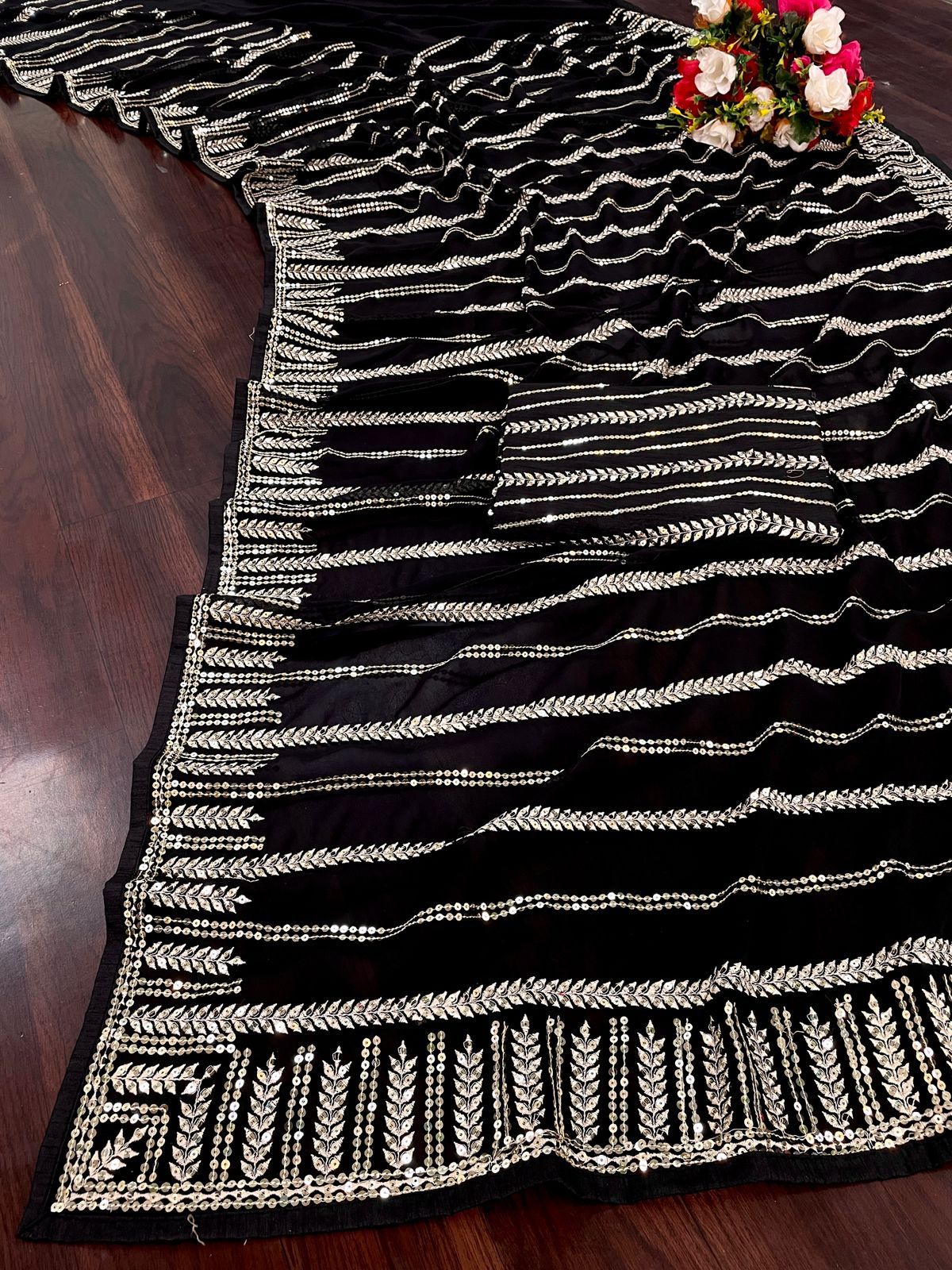 Beautiful Designer Aqua Heavy Georgette Sequanc Saree 448