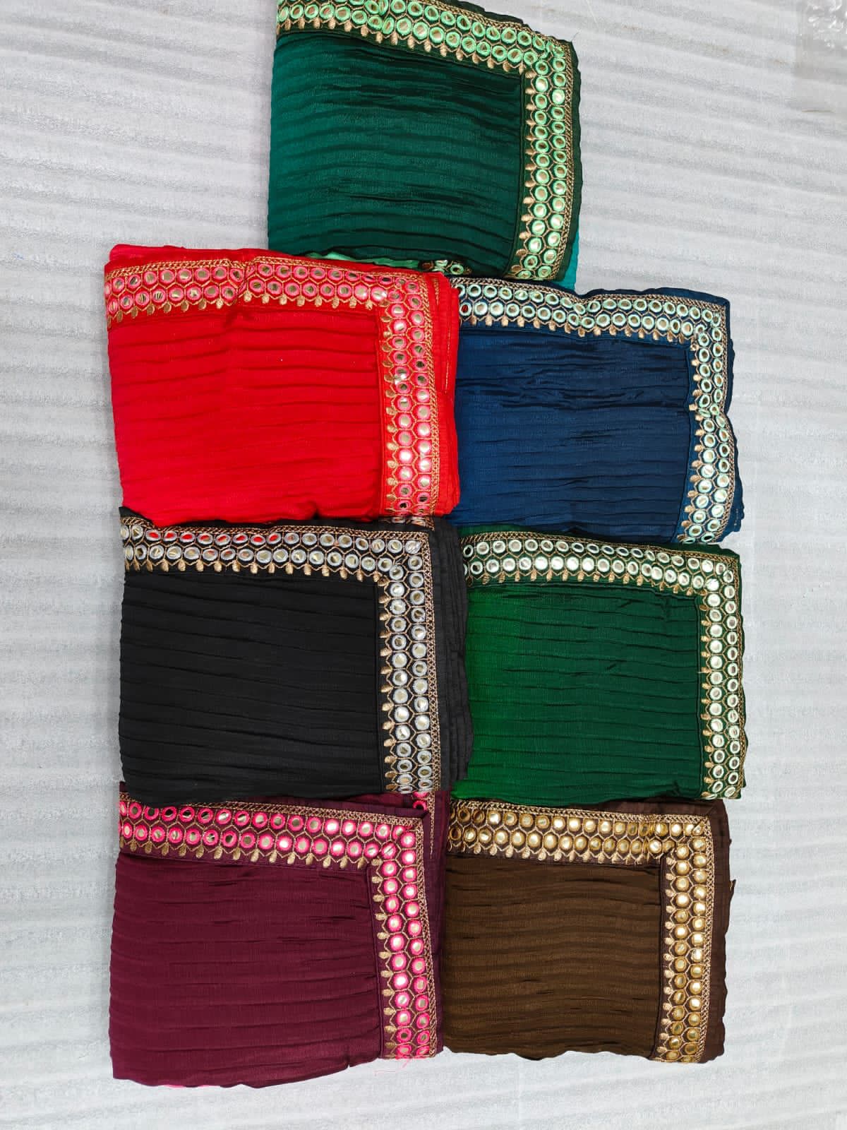 Work: Chinon Crush Embroidered Mirror kari lace saree with Blouse piece