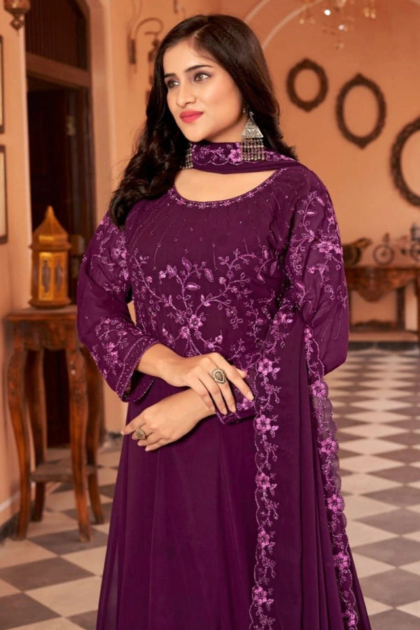 Beautiful Designer Wine Faux Georgette Anarkali Suit