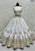 Pure Chinon Dupatta and Silk Crafted in metalic Sequins 9mm with zari Embroidery Flaired Partywear Lehenga choli