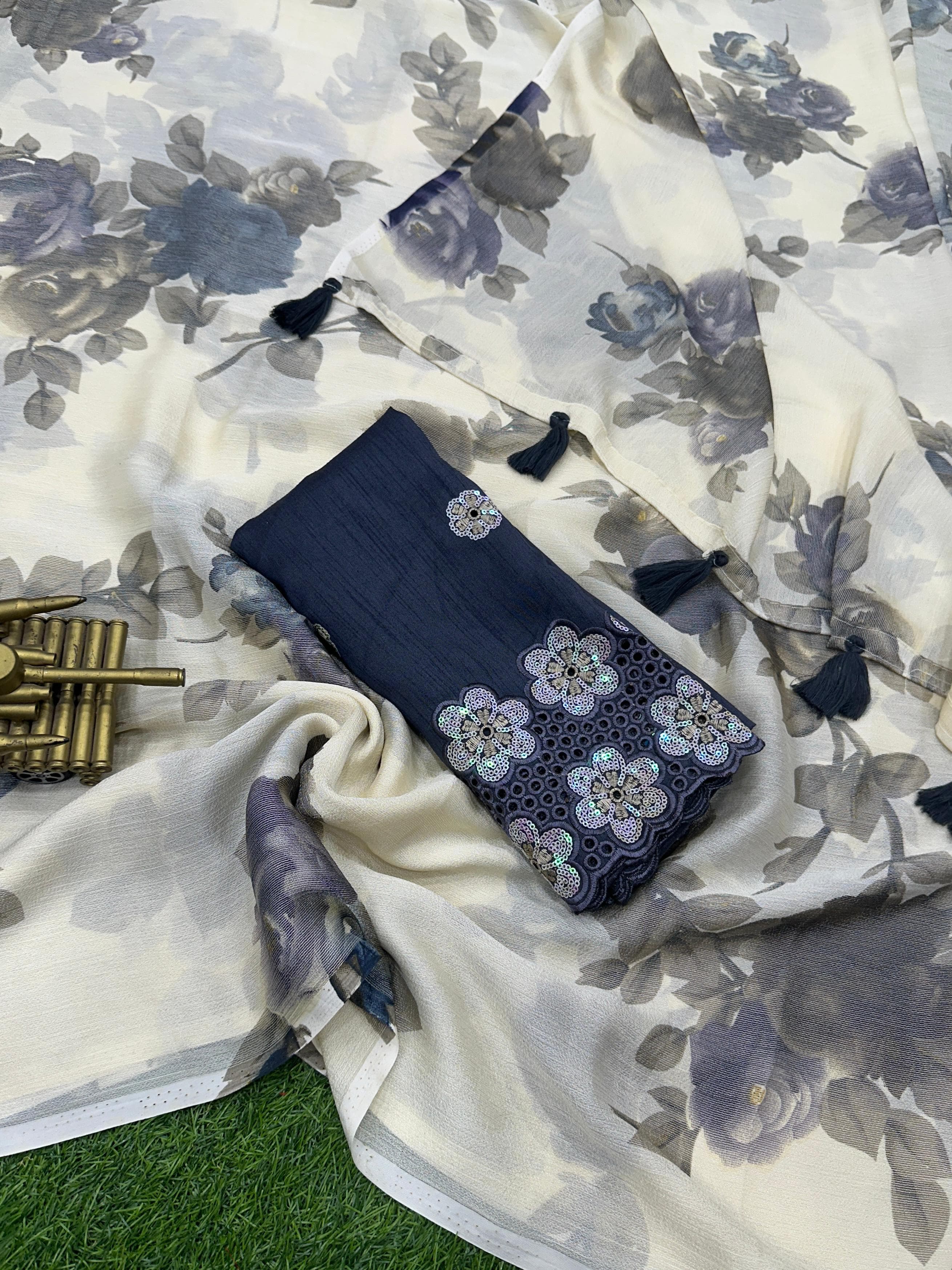 Beautiful Designer Chiffon Braso Saree Beautiful Designer Chiffon Braso Saree