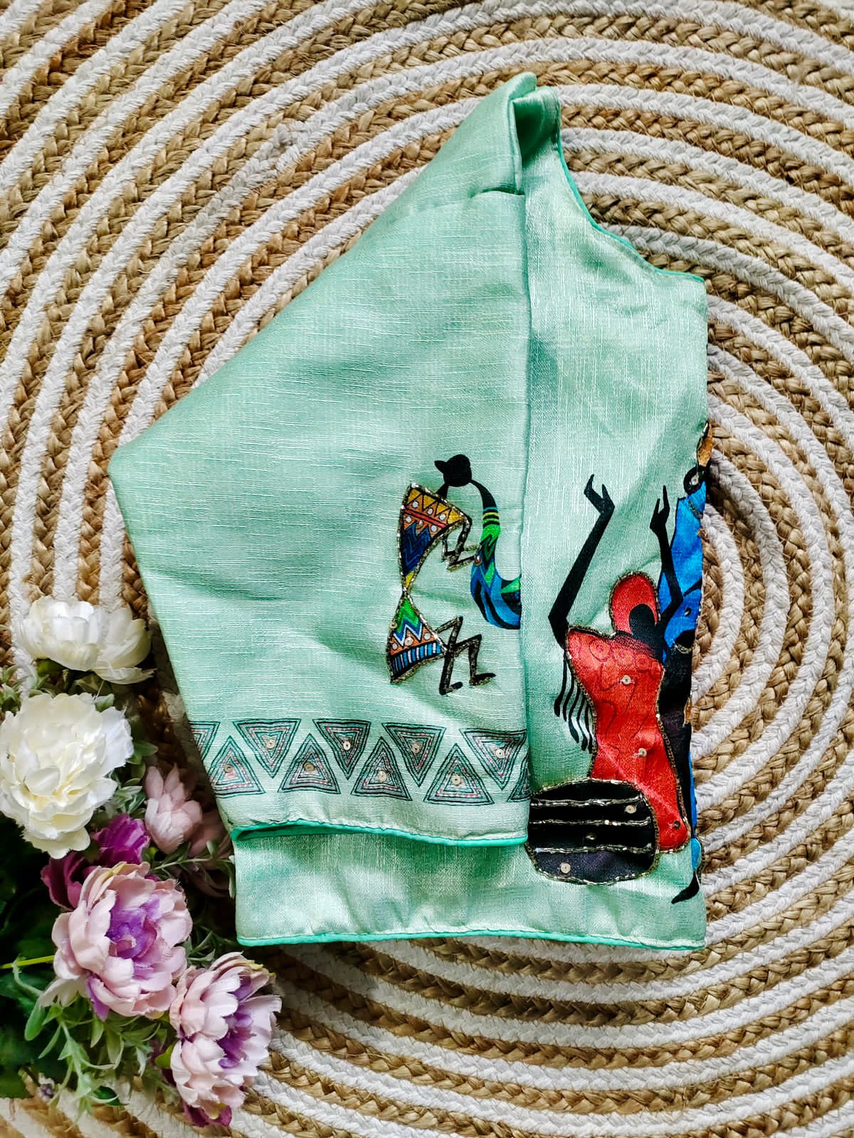 Pure silk fabric with Decent print all over blouse with antique handcrafted work