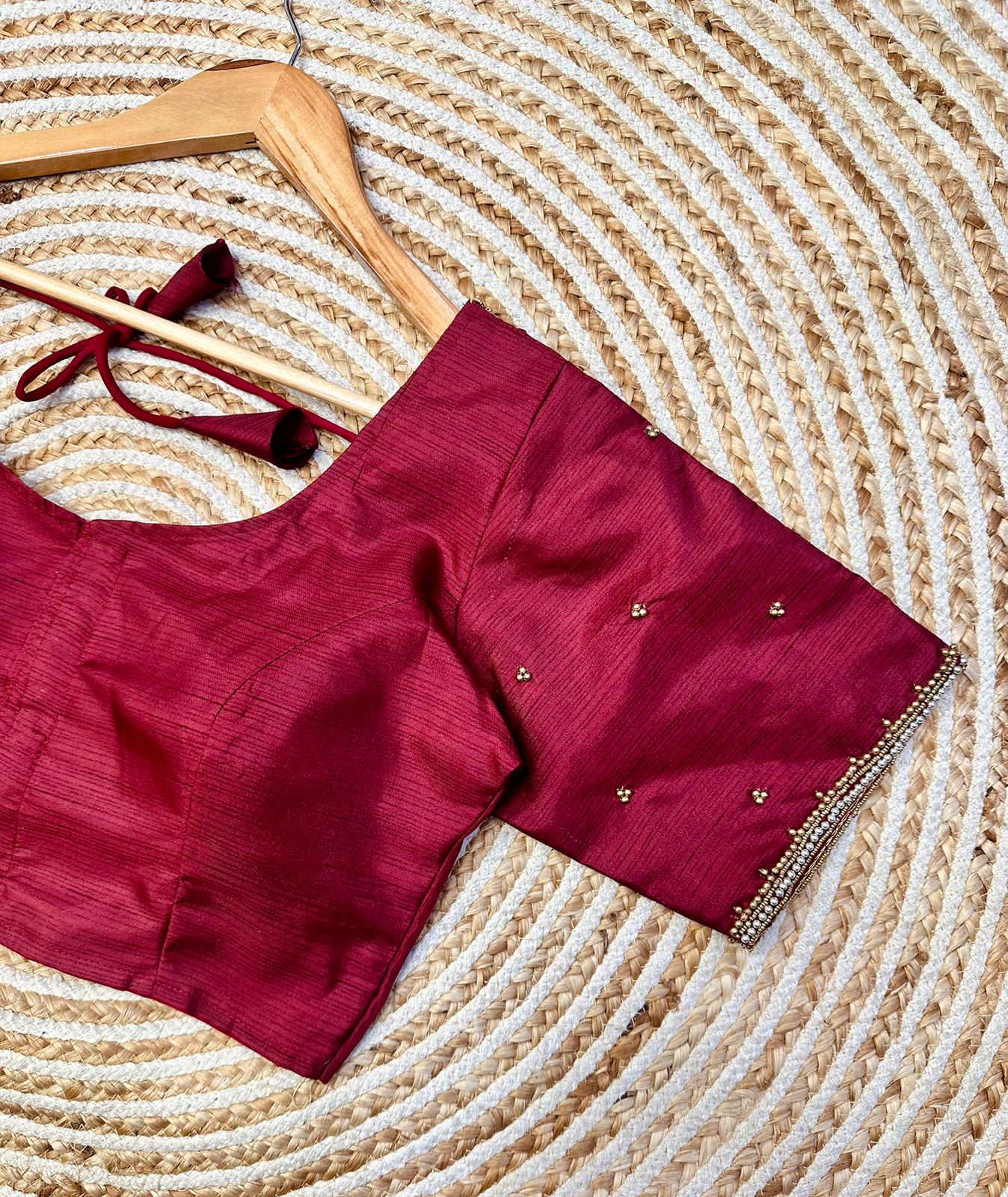 Beautiful golden handcrafted work all over sleeves with heavy work in back side neck of blouse