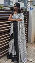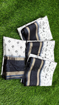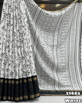Beautiful White Crape Silk Saree with all over design along with contrast sequence border