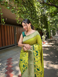 Beautiful Designer Wonderful Pista Green Zari Woven Banarasi Silk Wedding Saree With Blouse