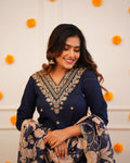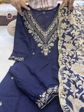 Get festive ready in our new Afghani suit set with Embriodrary detailing and floral print organza duppata available in Three beautiful Shades