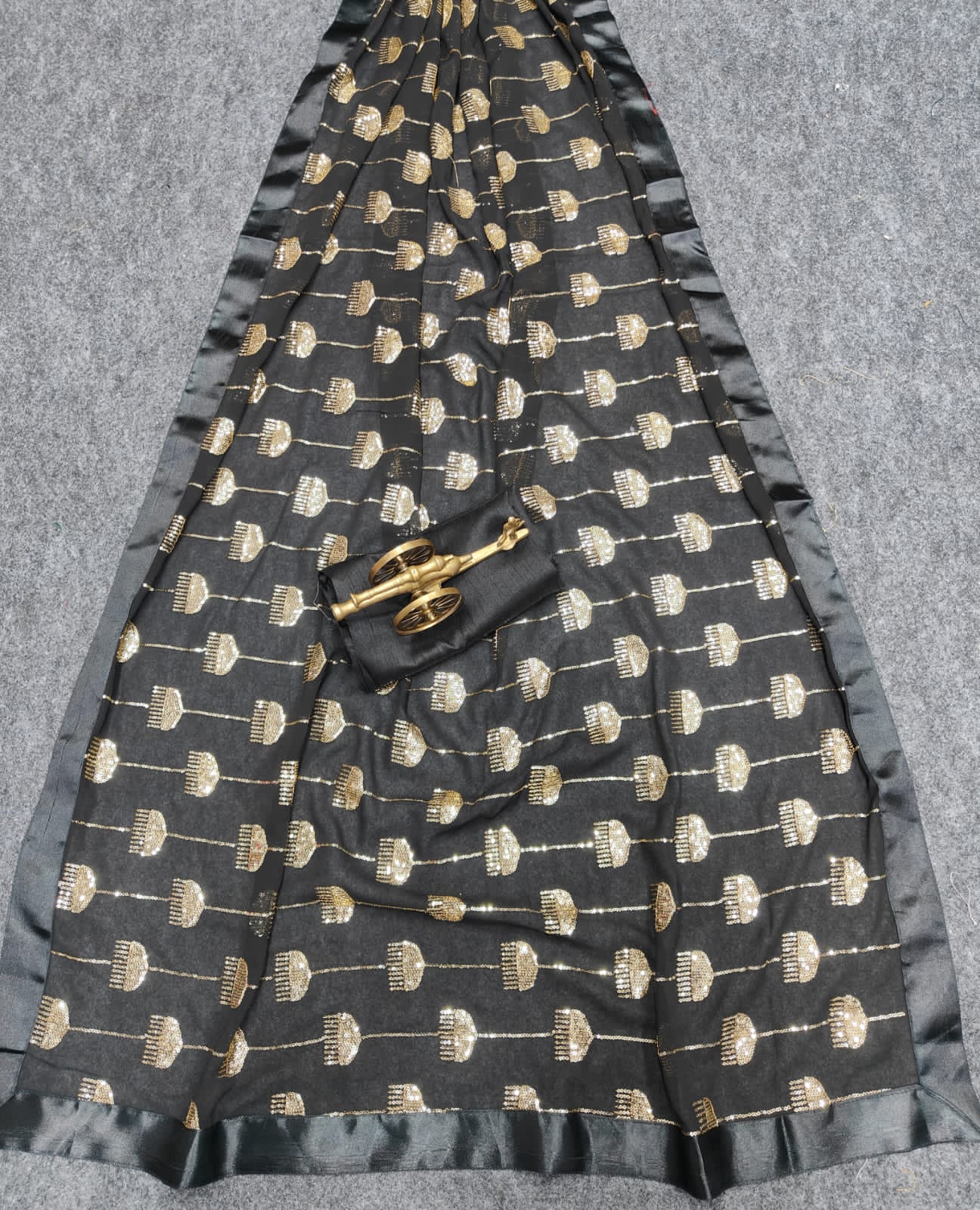 Georgette silk saree with sequence work WITH SATIN BORDER.