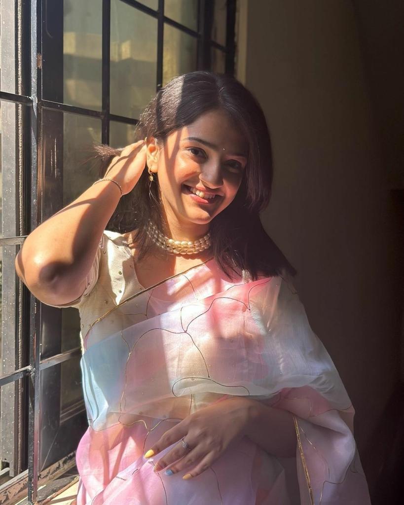 Beautiful Designer Pastel Multicolor Hand Printed Organza Saree