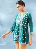 Beautiful Designer Reyon Tunics Ethnic Motif White Embroidery Thread Work Kurti Top