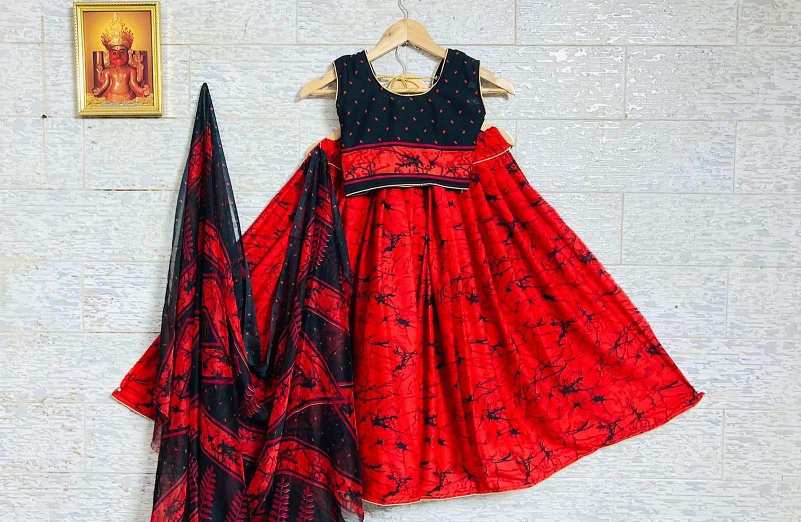 • Beautiful Designer Kids Kalamkari Silk Lehenga Choli