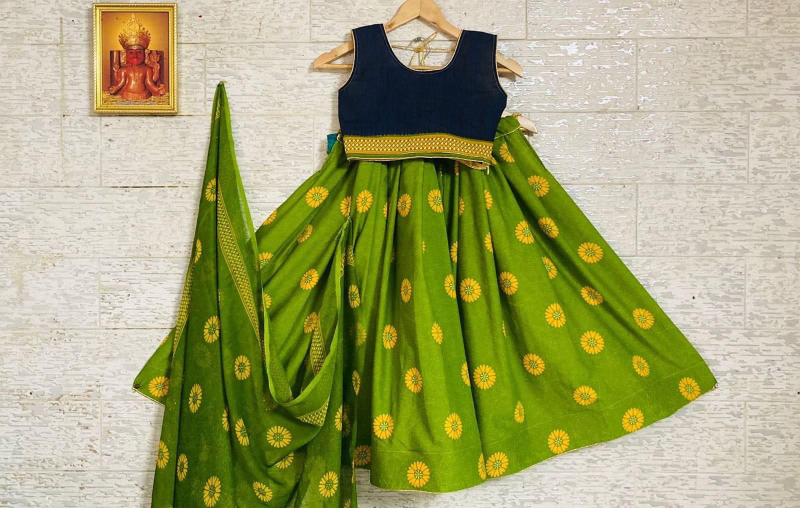 Beautiful Designer Kids Kalamkari Silk Lehenga Choli