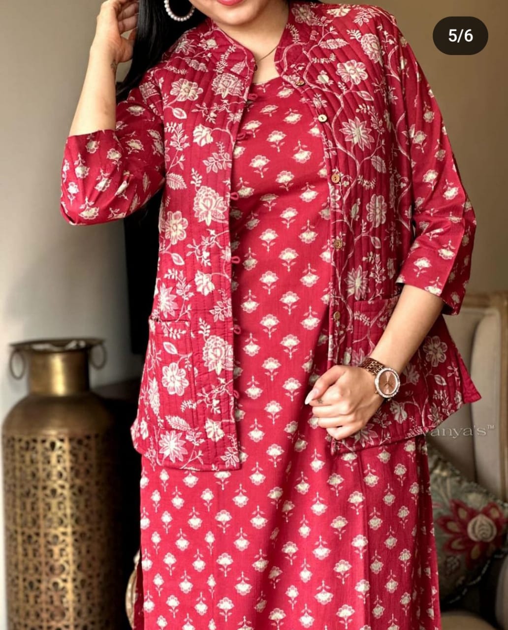 Beautiful Designer Winter Cotton Kurti Pant Set
