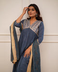 Featuring Beautiful Heavy Suit Set which is beautifully decorated with intricate embroidery, Zari weaving. It is paired with matching pants and dupatta