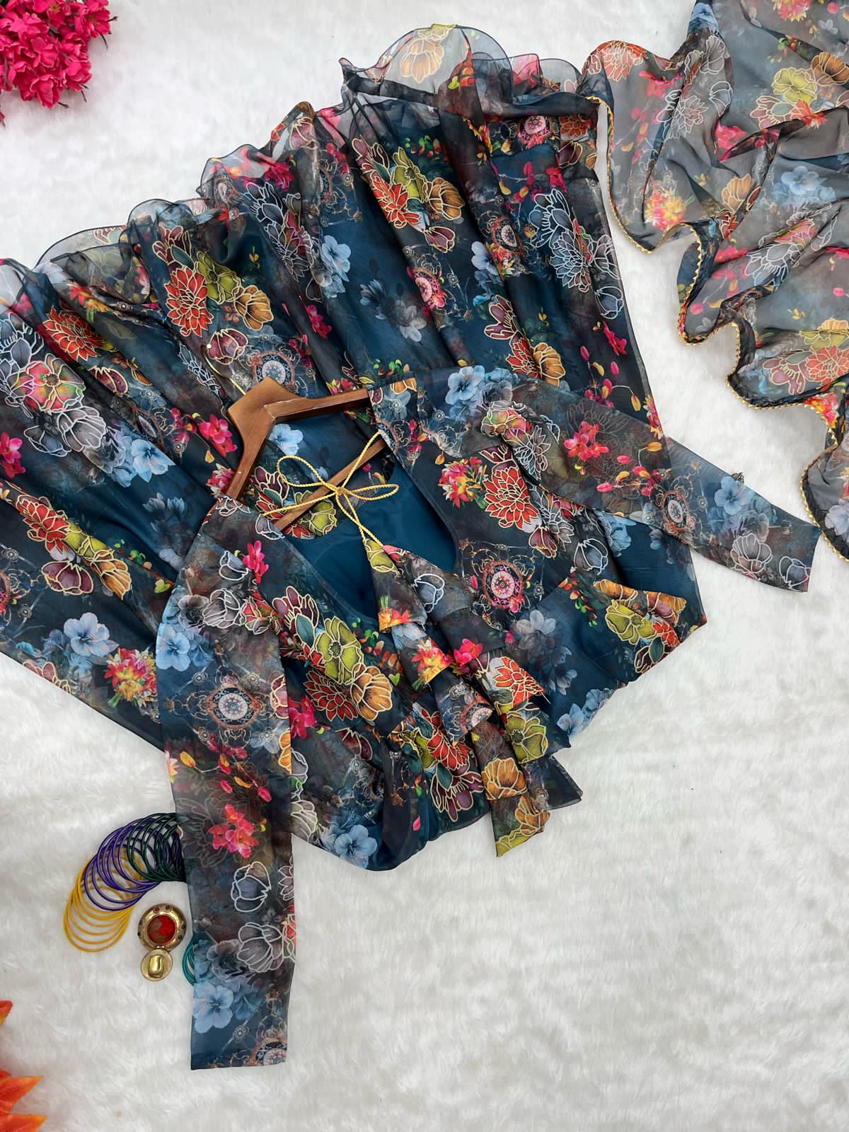 Dupatta : Organza Taby Silk With Digital Print , Four Side Golden Gotta Lece Broder ….
