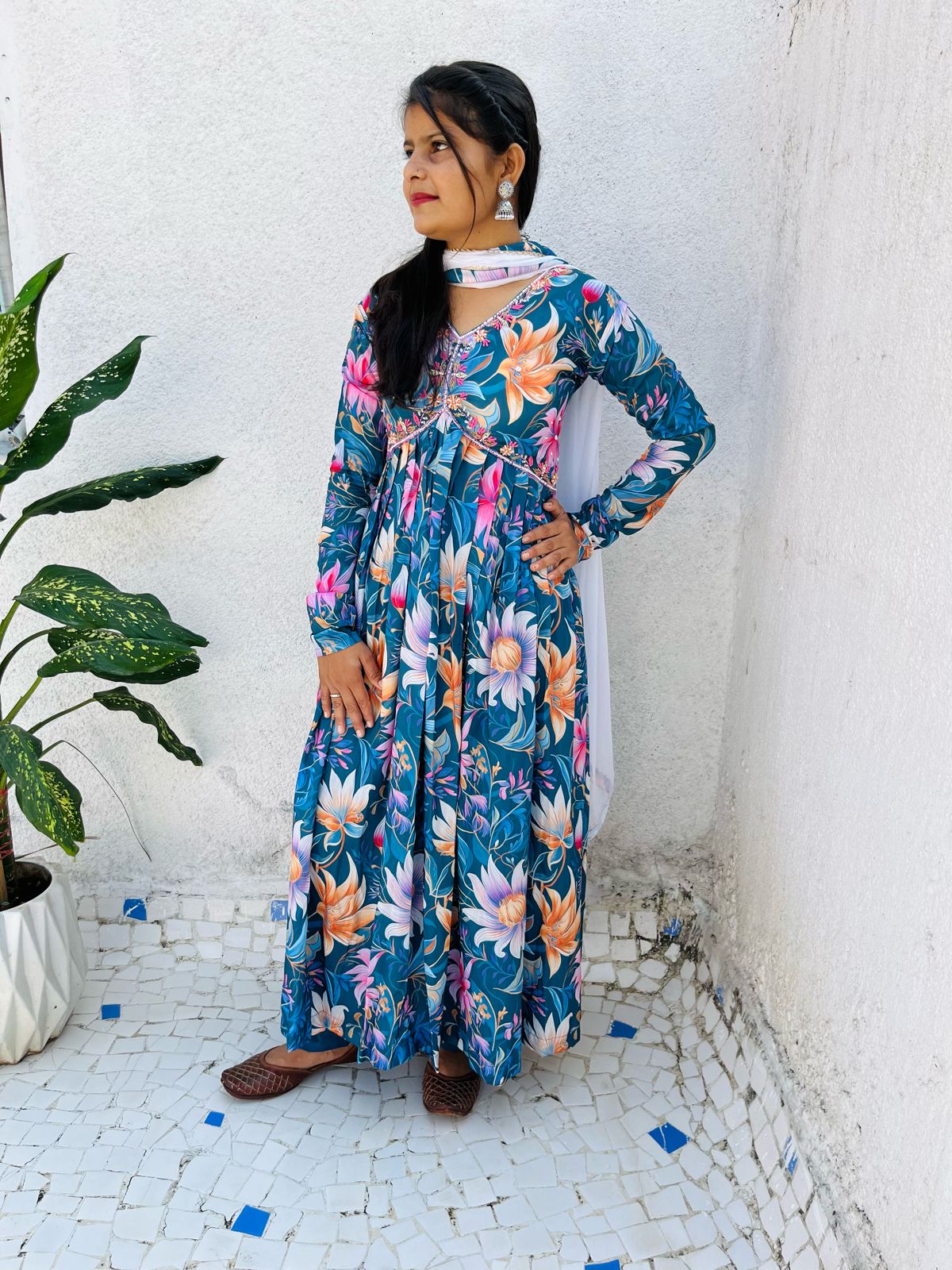 Beautiful Designer Party Wear Look Organza Taby Silk Gown