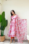 New Party Wear Look Organza Taby Silk Gown With Dupatta , bottom