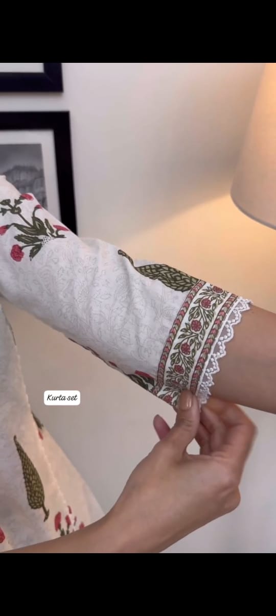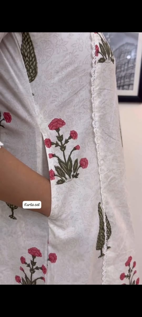 For a festive gathering, you’ll can opt for our Blue and White Plazo Suit Set which is decorated with handwork and motifs. It is paired with matching Plazo pants and dupatta. It comes with Cotton 60 60 Plazo