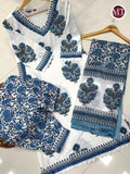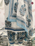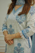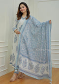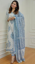For a festive gathering, youβll can opt for our Blue and White Afghani Suit Set which is decorated with finest embroidery and motifs. It is paired with matching afghani pants and dupatta. It comes with Mul Cotton Lining
