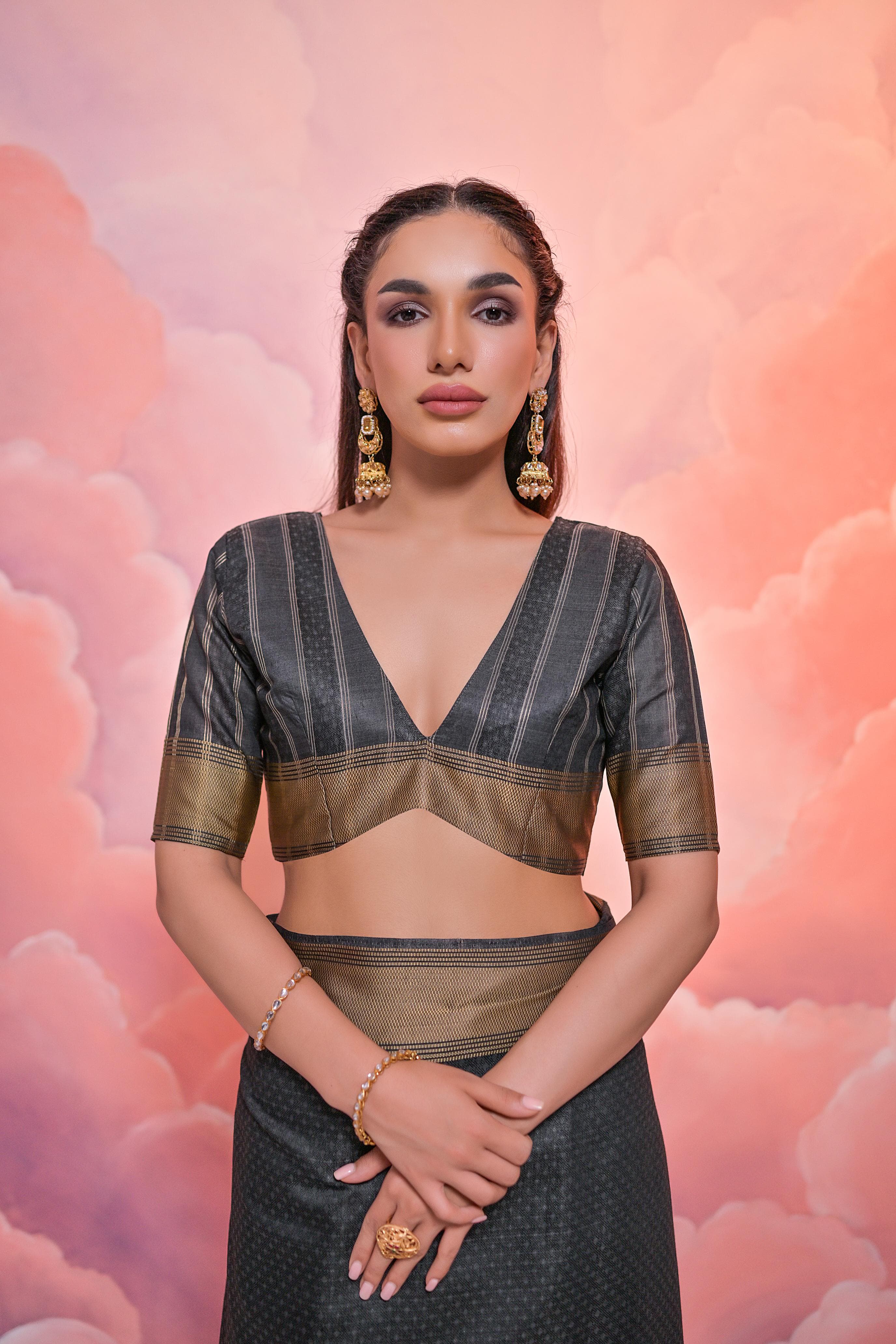 Premium soft Resham silk saree with all over small butti weaving pattern and fine zari weaving border with claasic linning pallu and running blouse piece