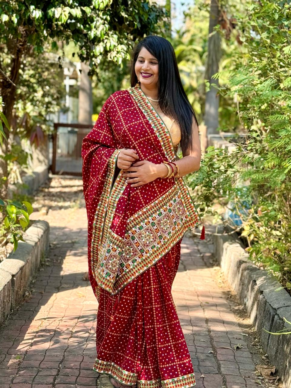 Saree :~ Vishitra Saree with Print Bandhani Print & Heavy wark Patti Work Border in Saree