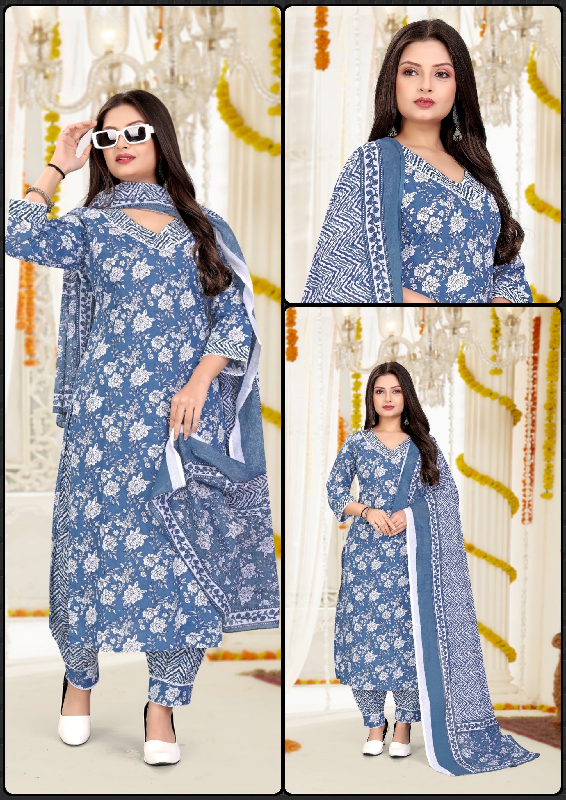 Beautiful Designer Pure Cotton Full Stiched Kurti Pant with Dupatta