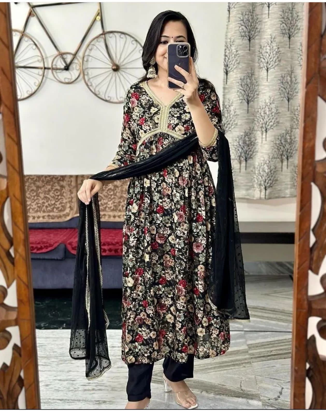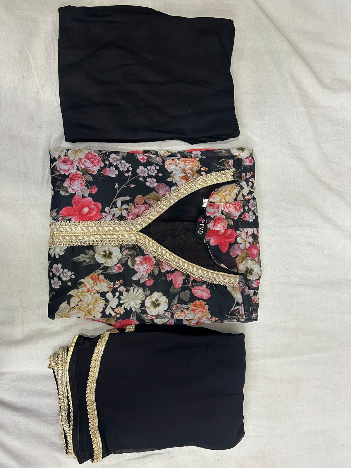 Aaliya black Floral Alia Cut Suit Set