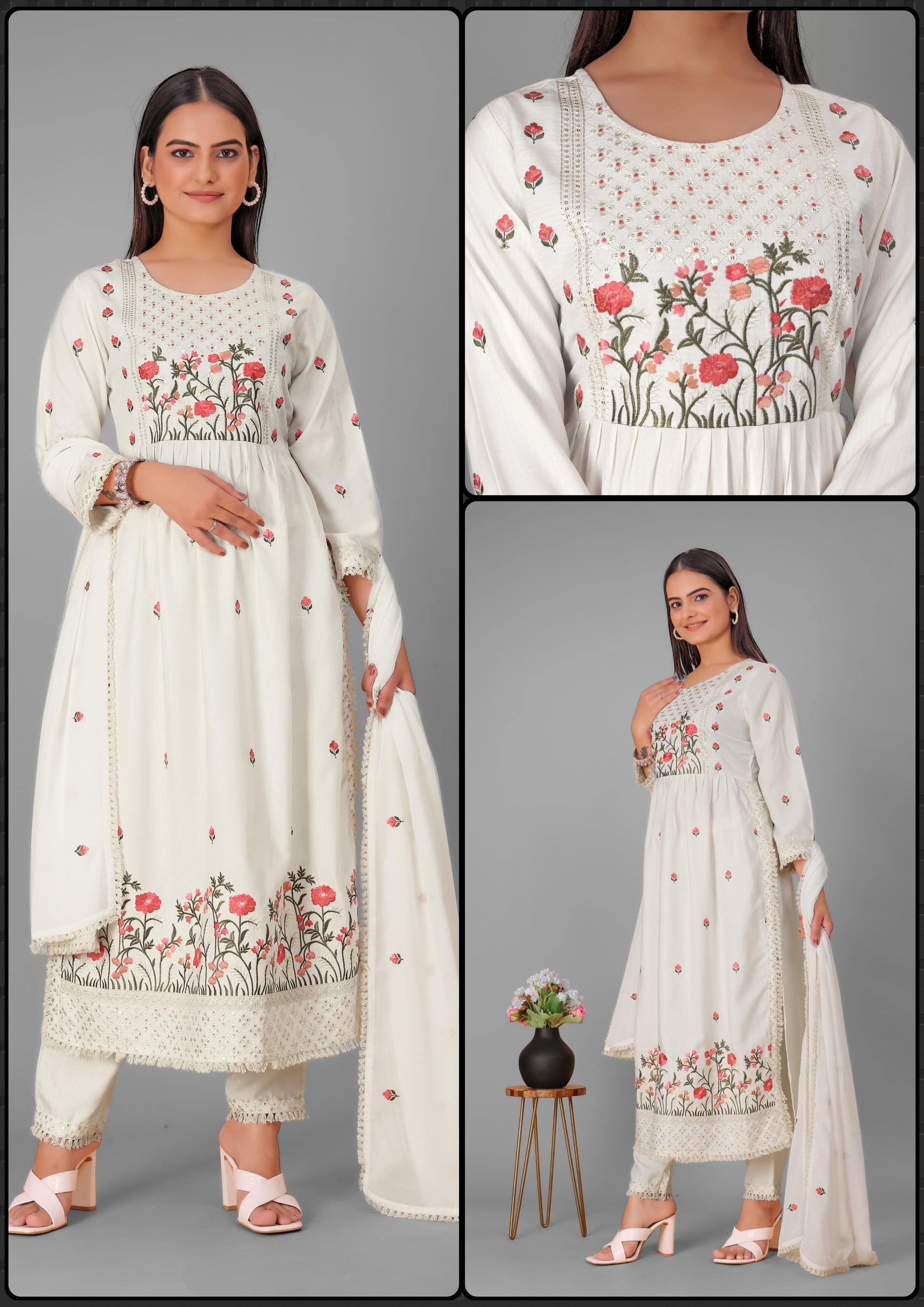 Beautiful Designer Pure Cotton Full Stiched Kurti Pant with Dupatta