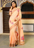 Pure Linen Weaving saree with all over weaving Pattern and colourfull Meena weaves flower all over with Zari Woven Border and Pallu with matching Blouse piece and Exclusive Tassels