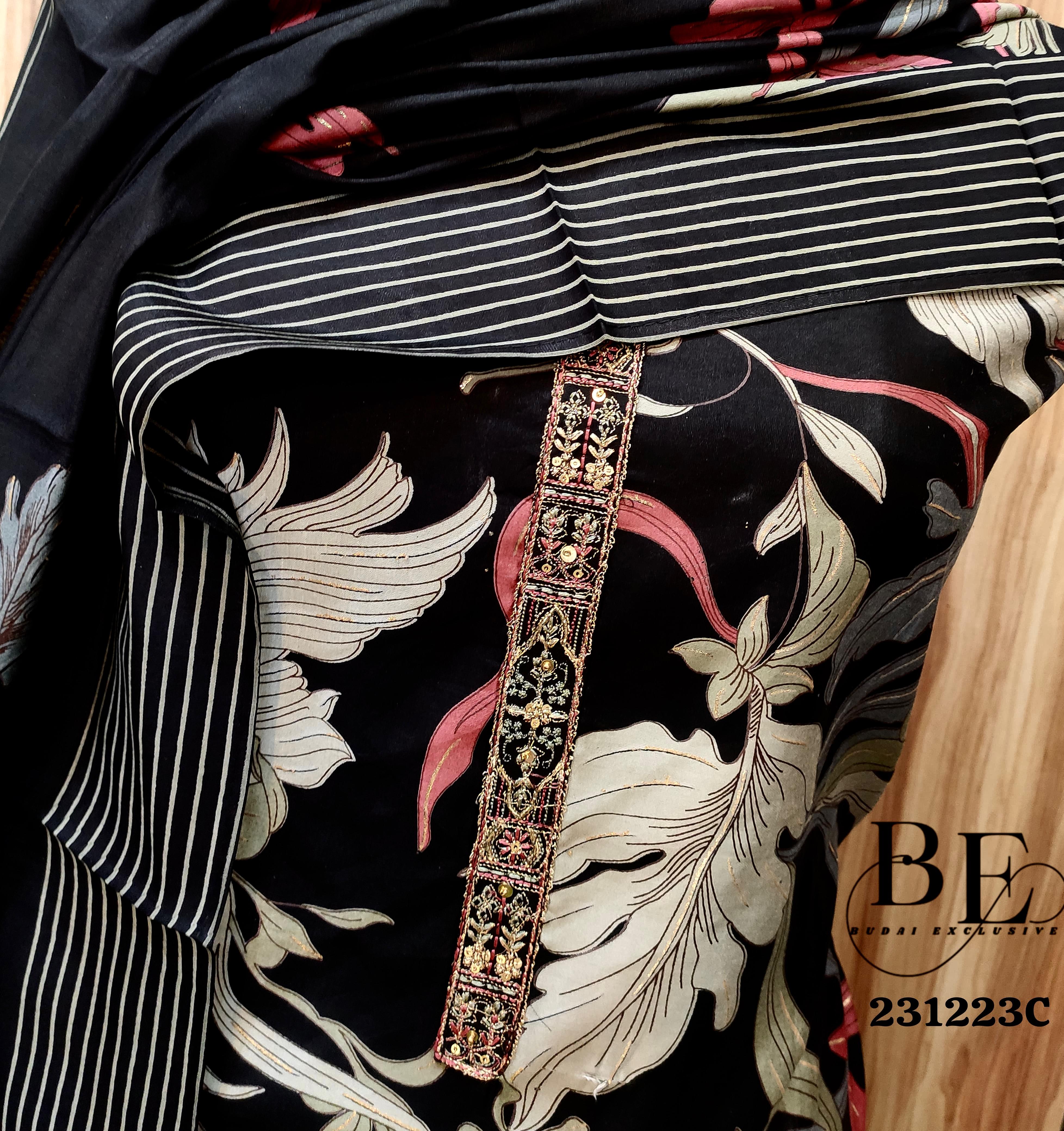 Top: PURE VISCOSE MUSLINE DIGITAL & FOIL PRINT WITH FANCY EMBROIDERY WORK