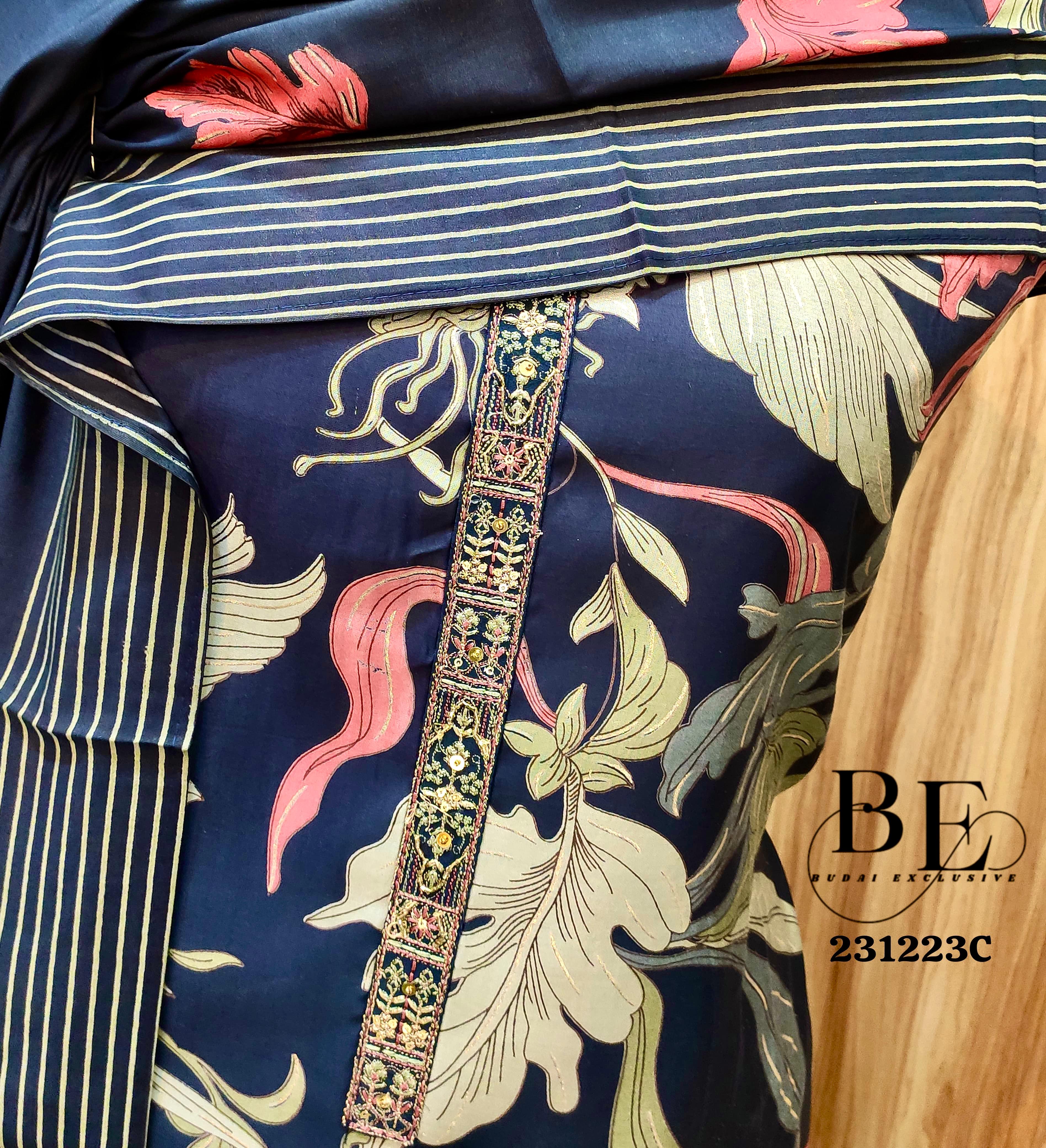 Top: PURE VISCOSE MUSLINE DIGITAL & FOIL PRINT WITH FANCY EMBROIDERY WORK