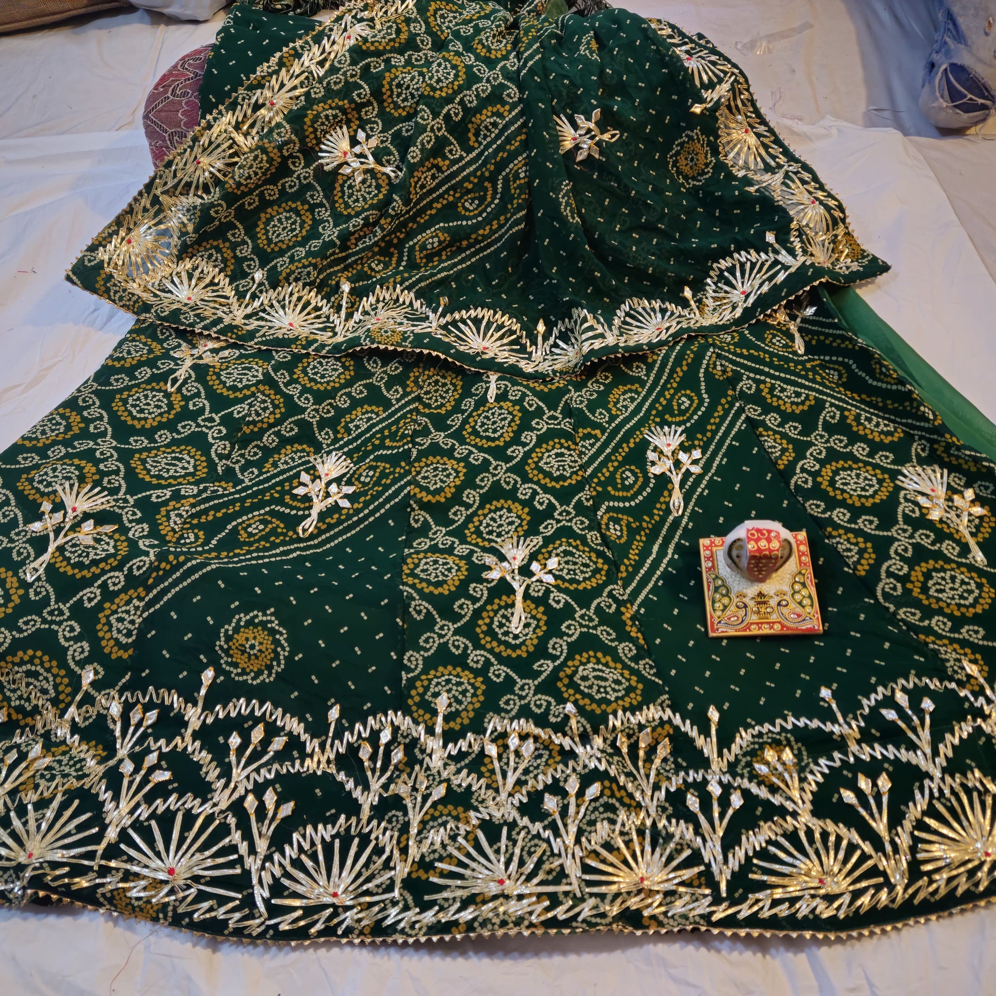 Pure 60g Georgette Fabric Lahenga Rai Bandhej with kacha Gota Patti Work