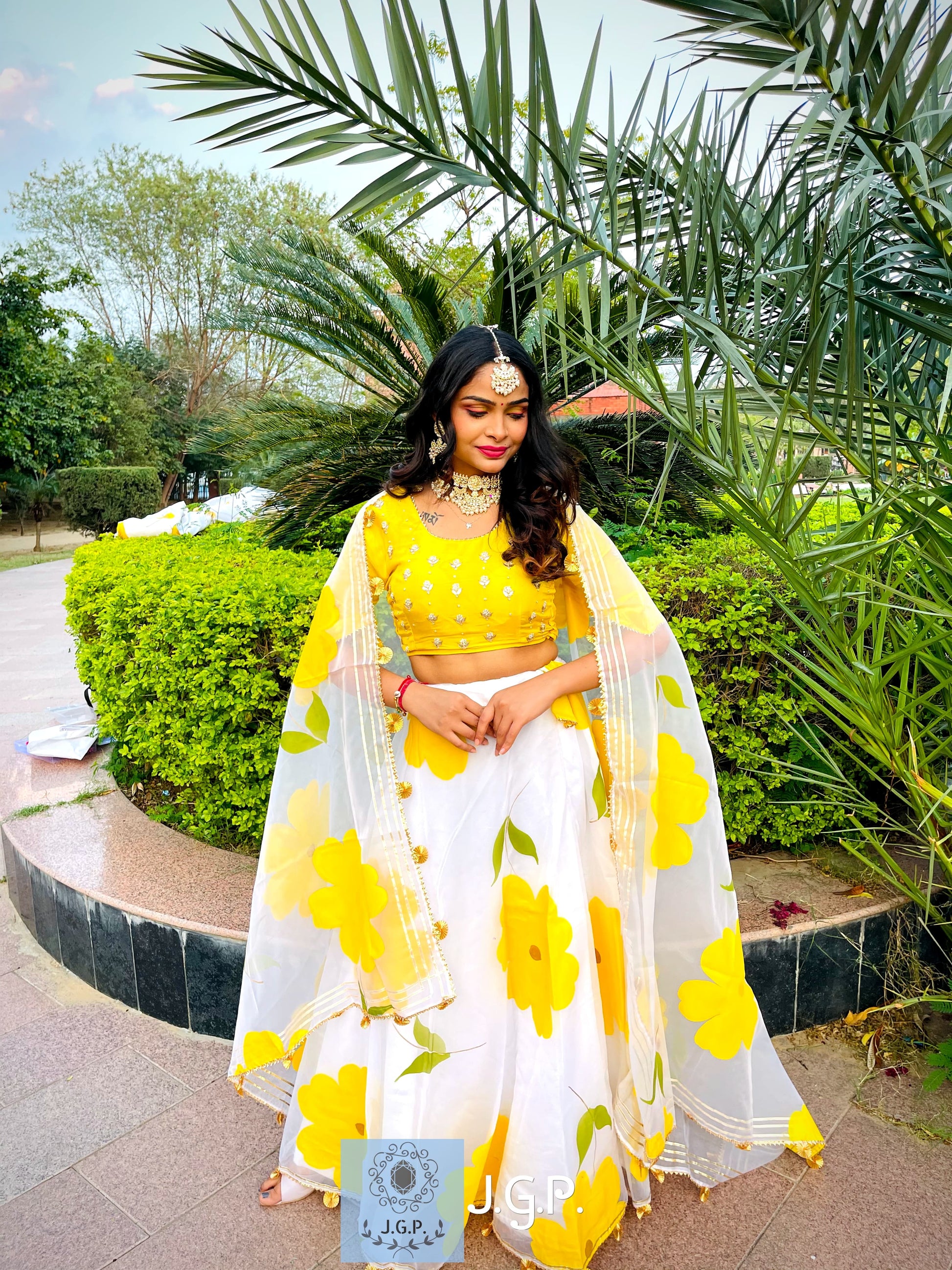 PURE ORGENZA SILK FABRIC Beautiful hand brush flower print with pure uppada silk fabric zari gota lace cotton silk liningh stiched Lehenga