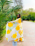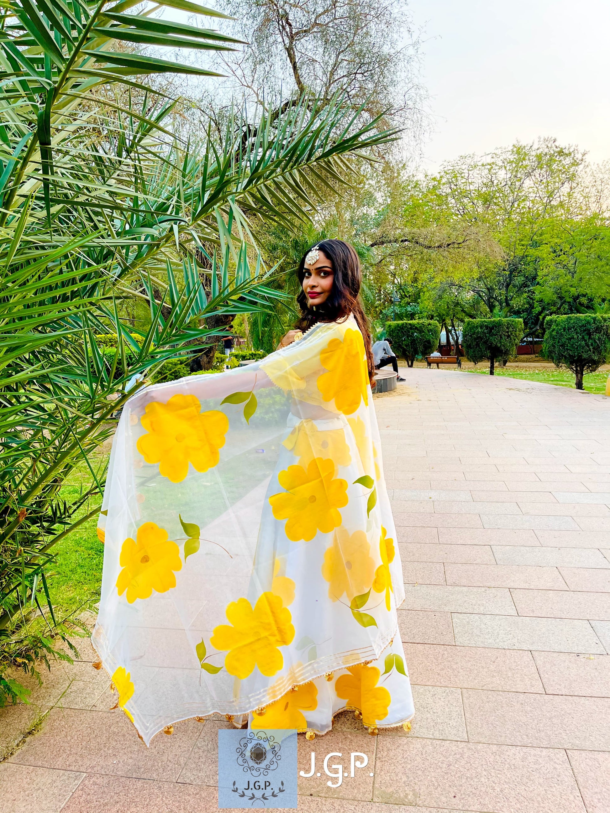 ORGENZA silk hand brush flower print gota lace work DUPTA