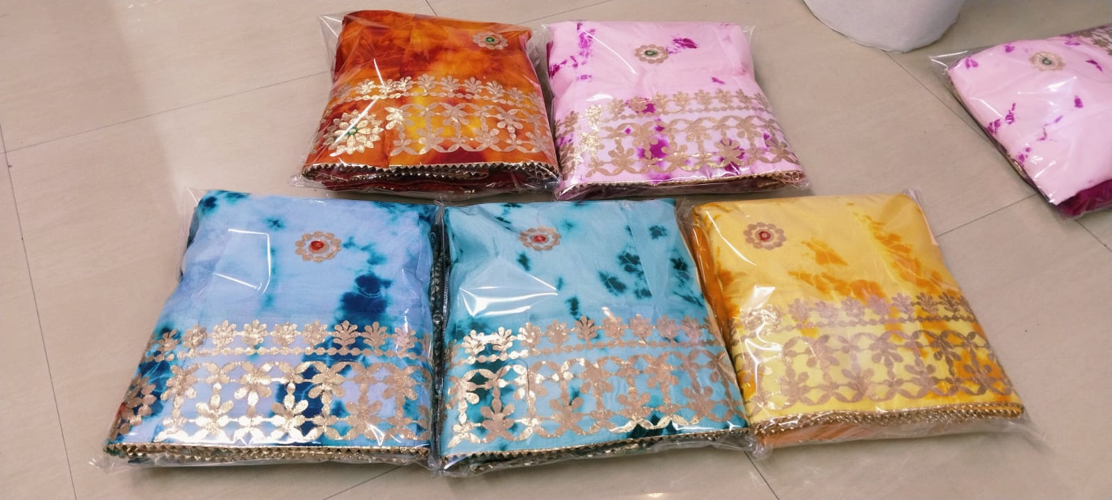 Chinone Silk Lahenga full Heavy Gotta Patti Work with Full Heavy Work Duppta nd Heavy Gotta Patti Work Blouse
