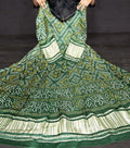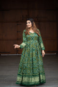 Presenting a perfectly blended endless array of patterns, designs and colors , that represents a vibrant indian culture & true essence of our traditional gaji silk bandhej gown.
