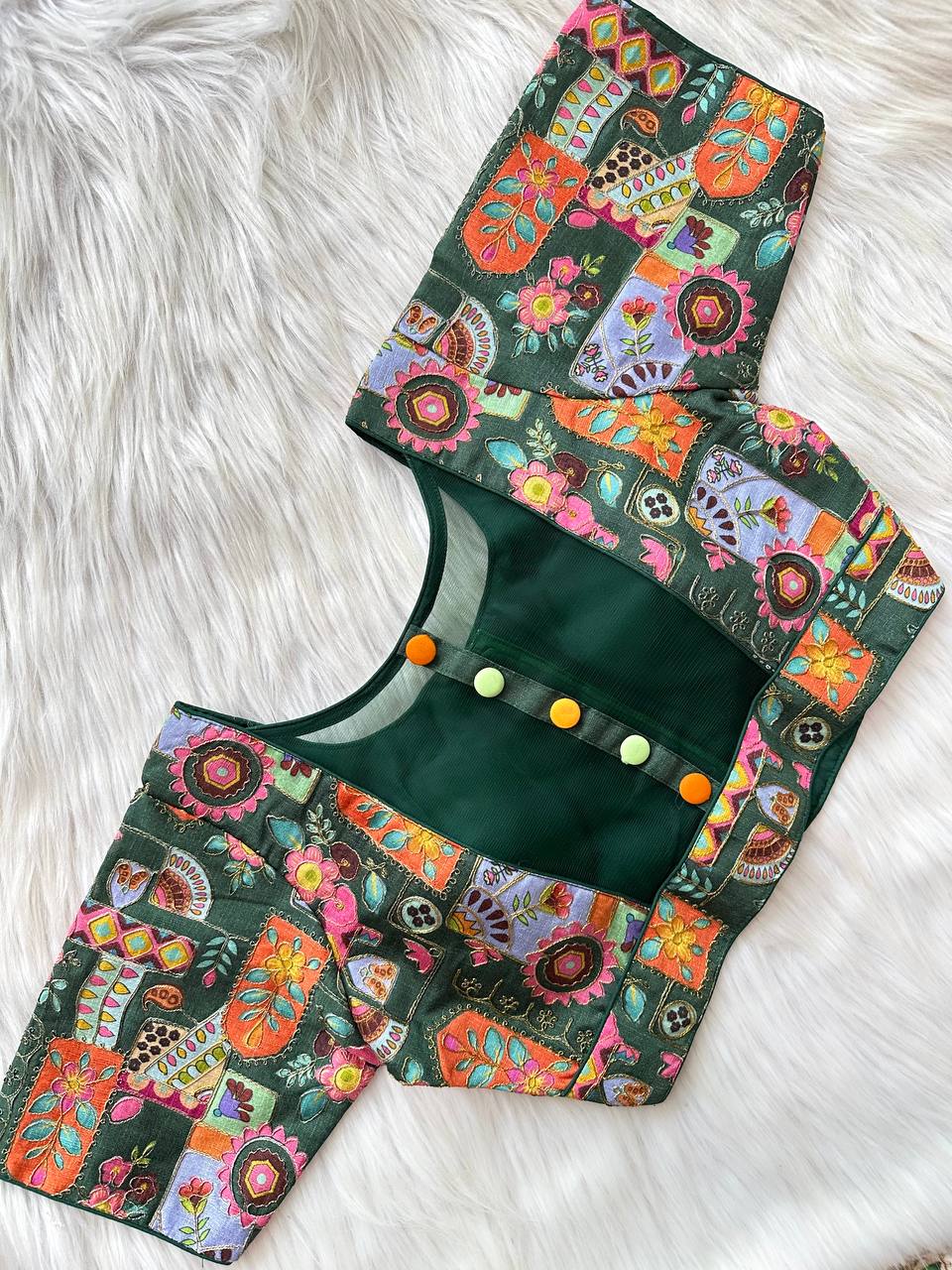 Premium Collection With Multi Work Match With any Designer Sarees Multi Codding Work On Malai Silk Fabric