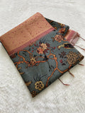 Soft Tussar Silk Weaving Sarees with *Beautiful Print With Attractive Weaving Border* And *Rich Zari Weaving Pallu & Contrast Print Blouse* With Tassels in new styles n new look