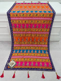 This teal and gold lehenga features intricate embroidery and mirror work, paired with a pink dupatta for a stunning, regal look.