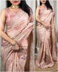 Saree- Digital print with thread Embroidered work with cut work & Boaring pattern.