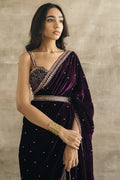 LEMB NEW DESIGNER PARTY WEAR WINE VELVET SAREE WITH EMBROIDERED WORK AND MOTI WITH WORK BLOUSE
