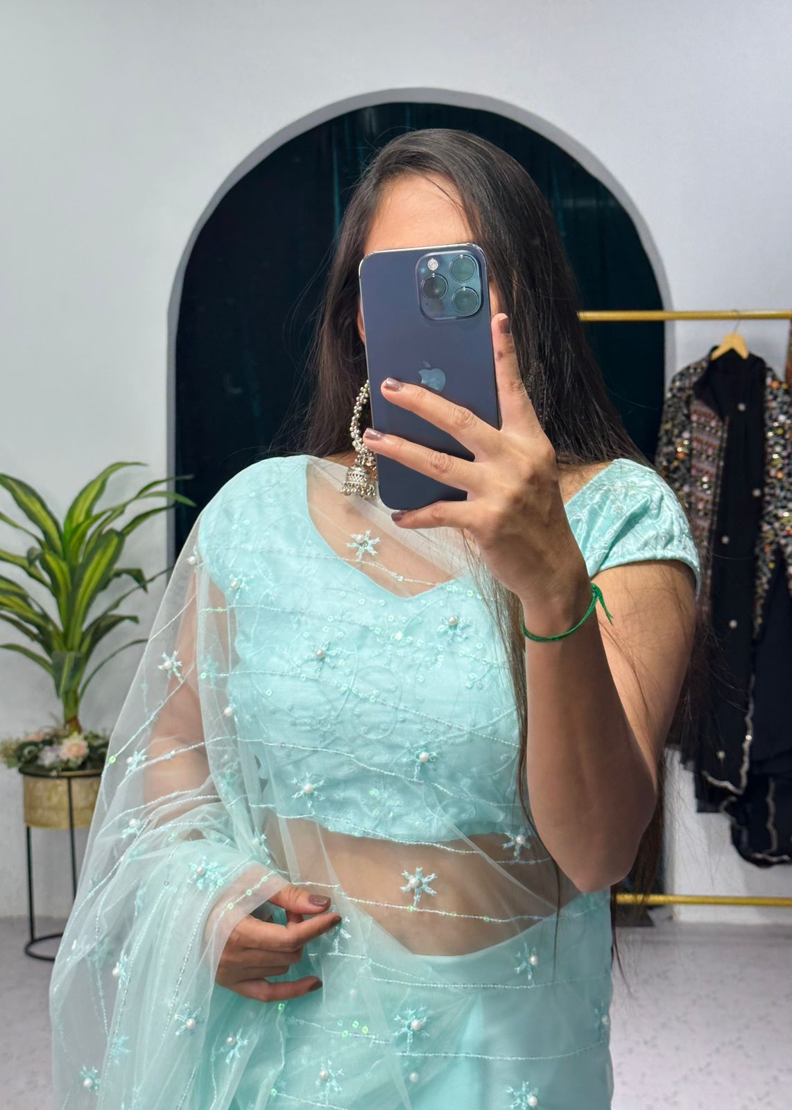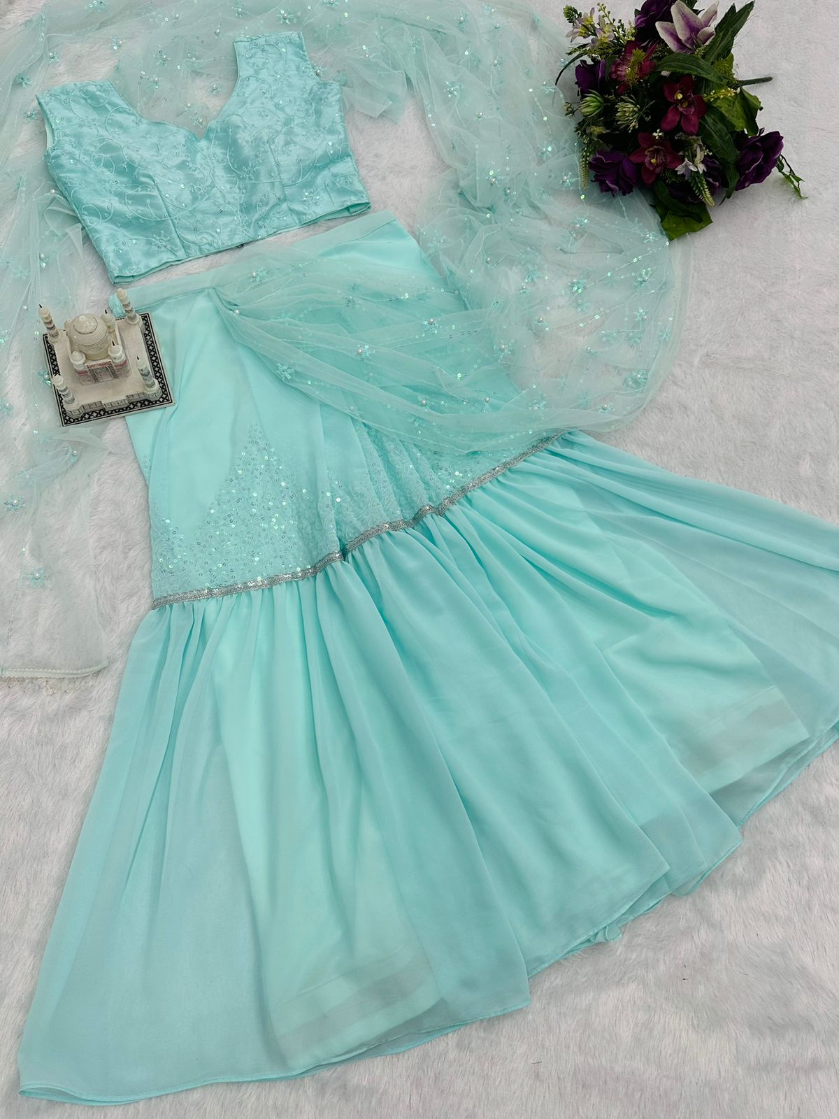 • Beautiful Designer Faux Georgette Lehenga Saree