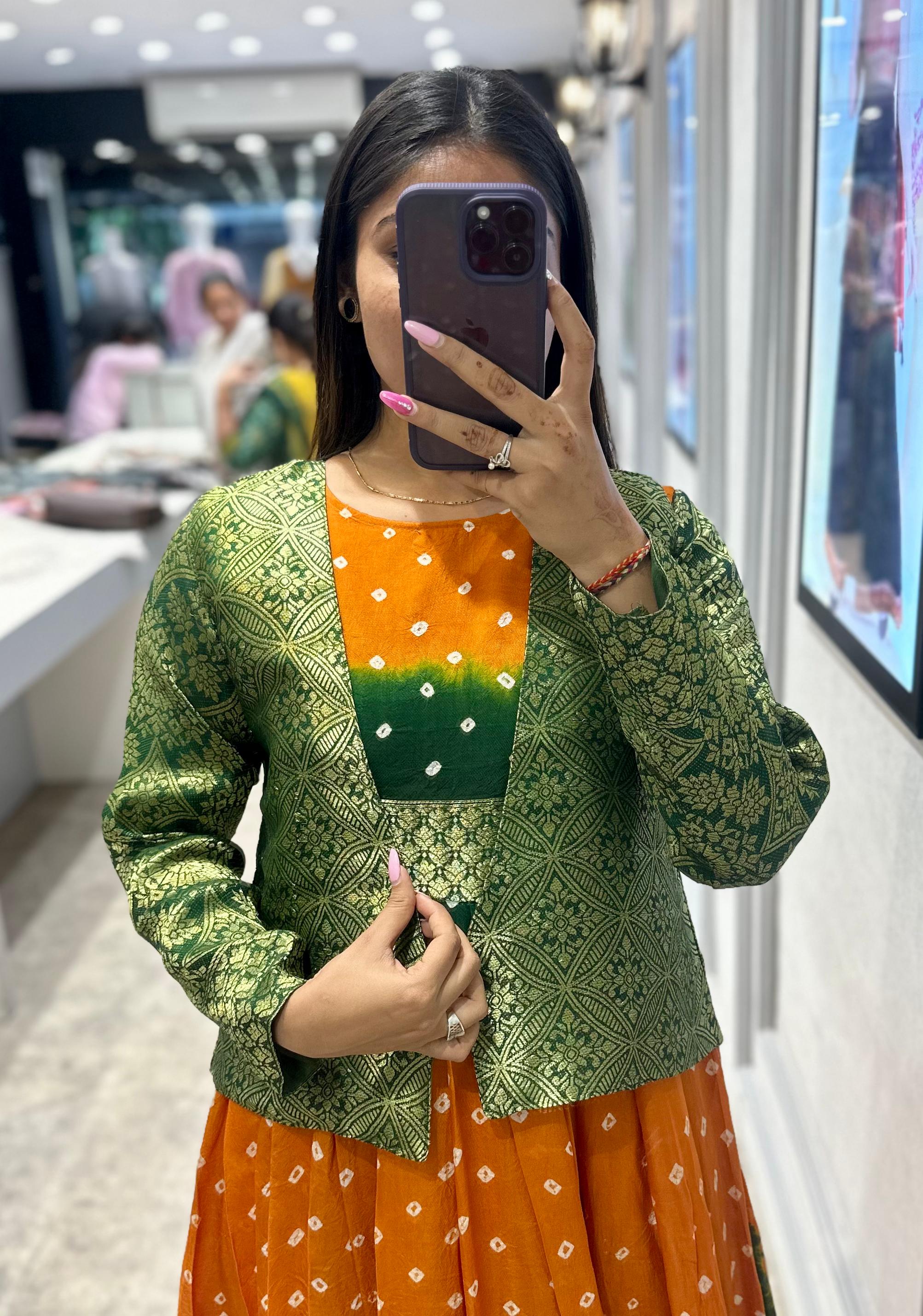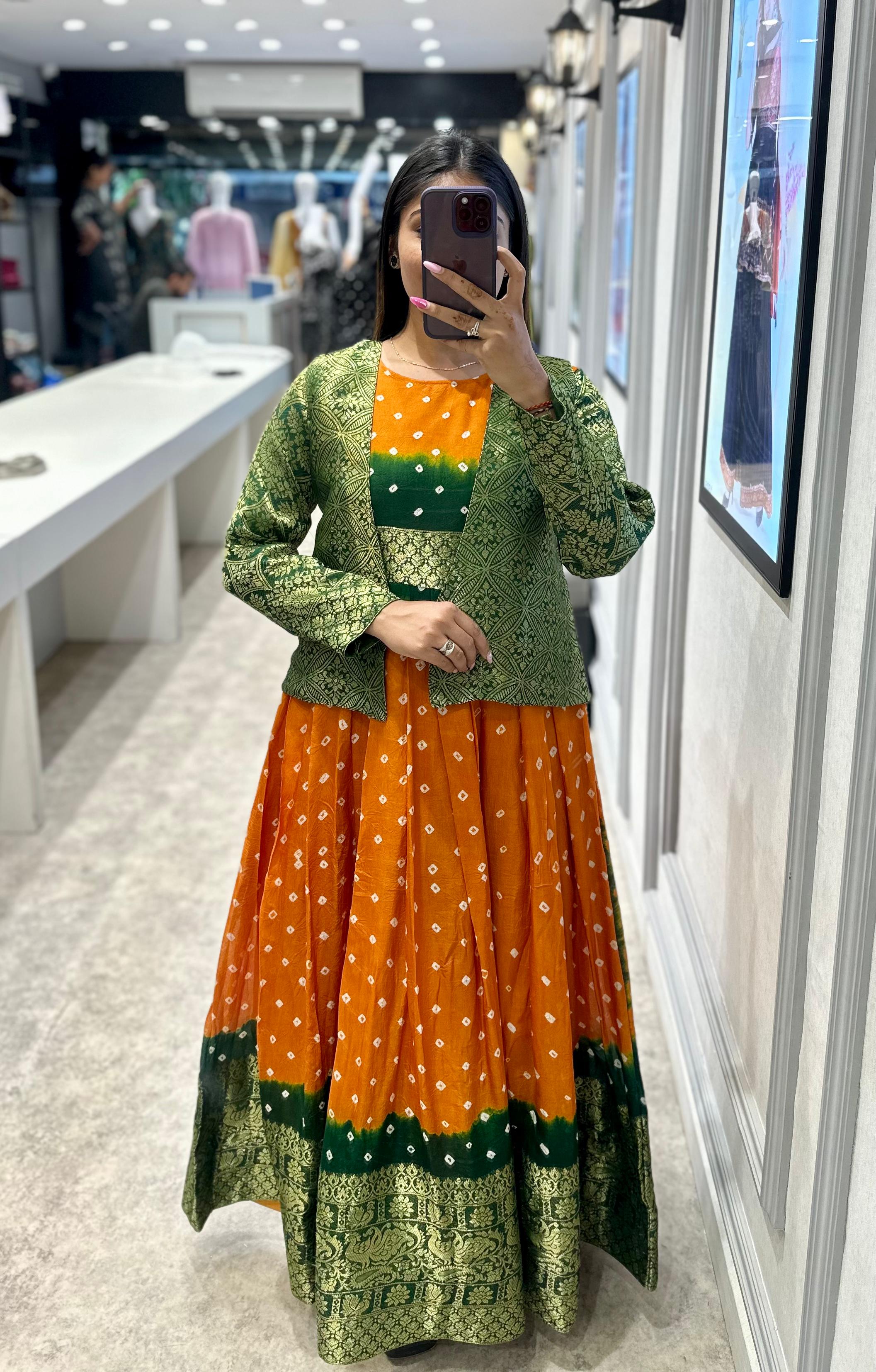 Beautiful Kanjiveram Silk Zari Gown With Koti