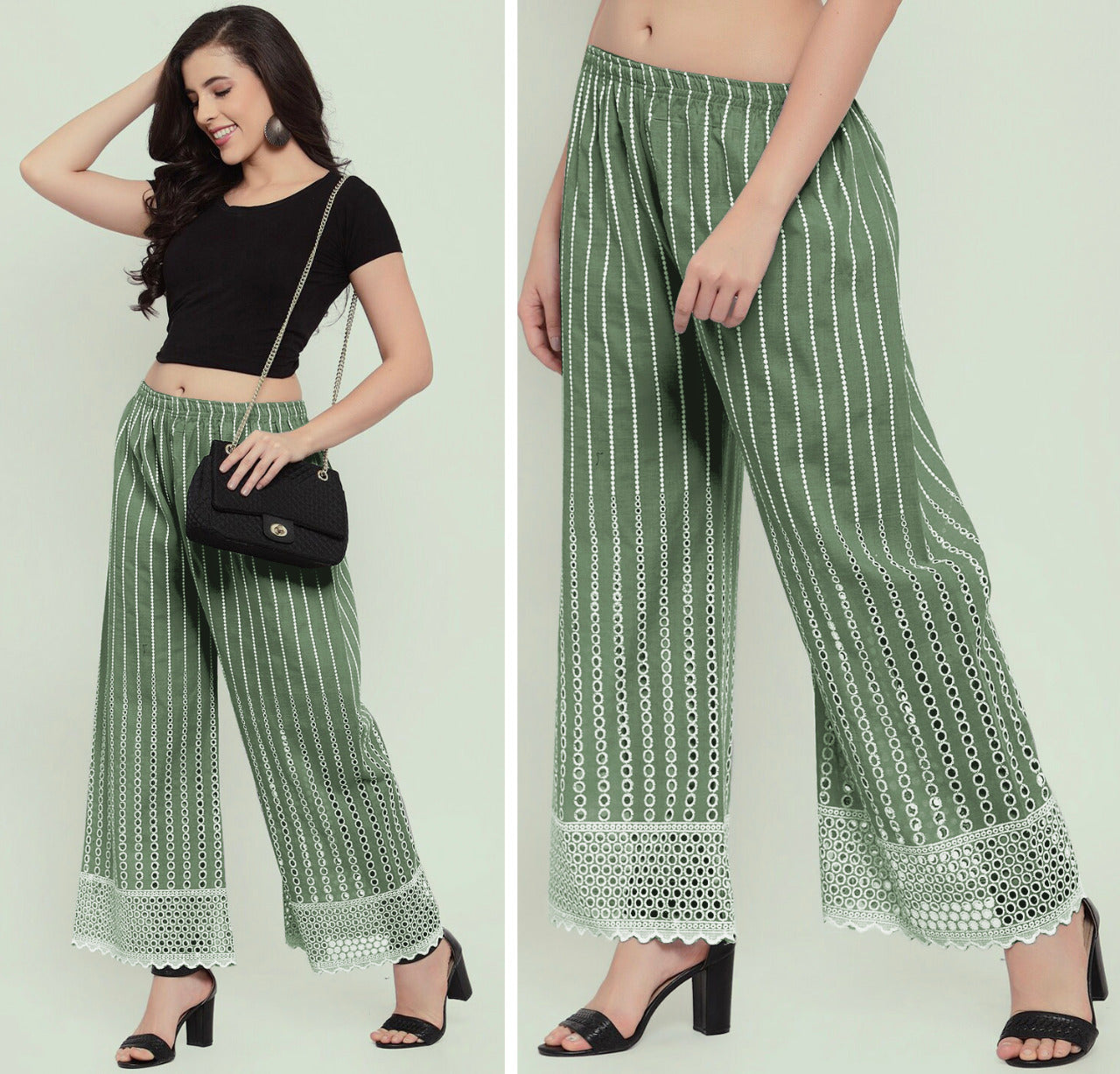 Women's Lucknow Chicken Embroidery Lowers Palazzos