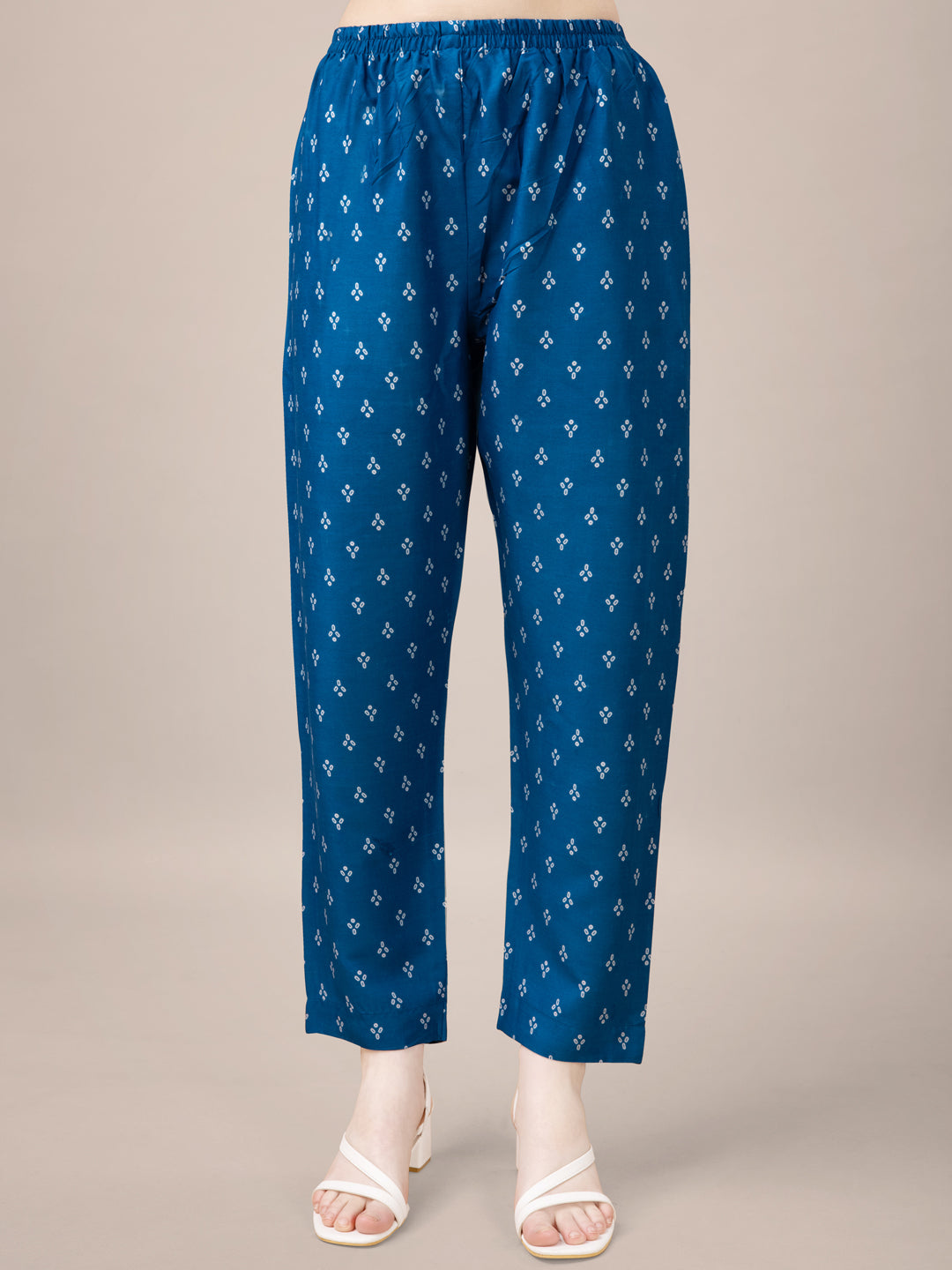 Blue Rayon Print with Embroidery & Sequence Work Kurti Set