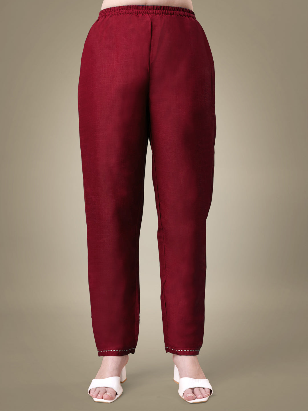 Maroon Heavy Cotton Blend with Embroidery Work Kurti Set