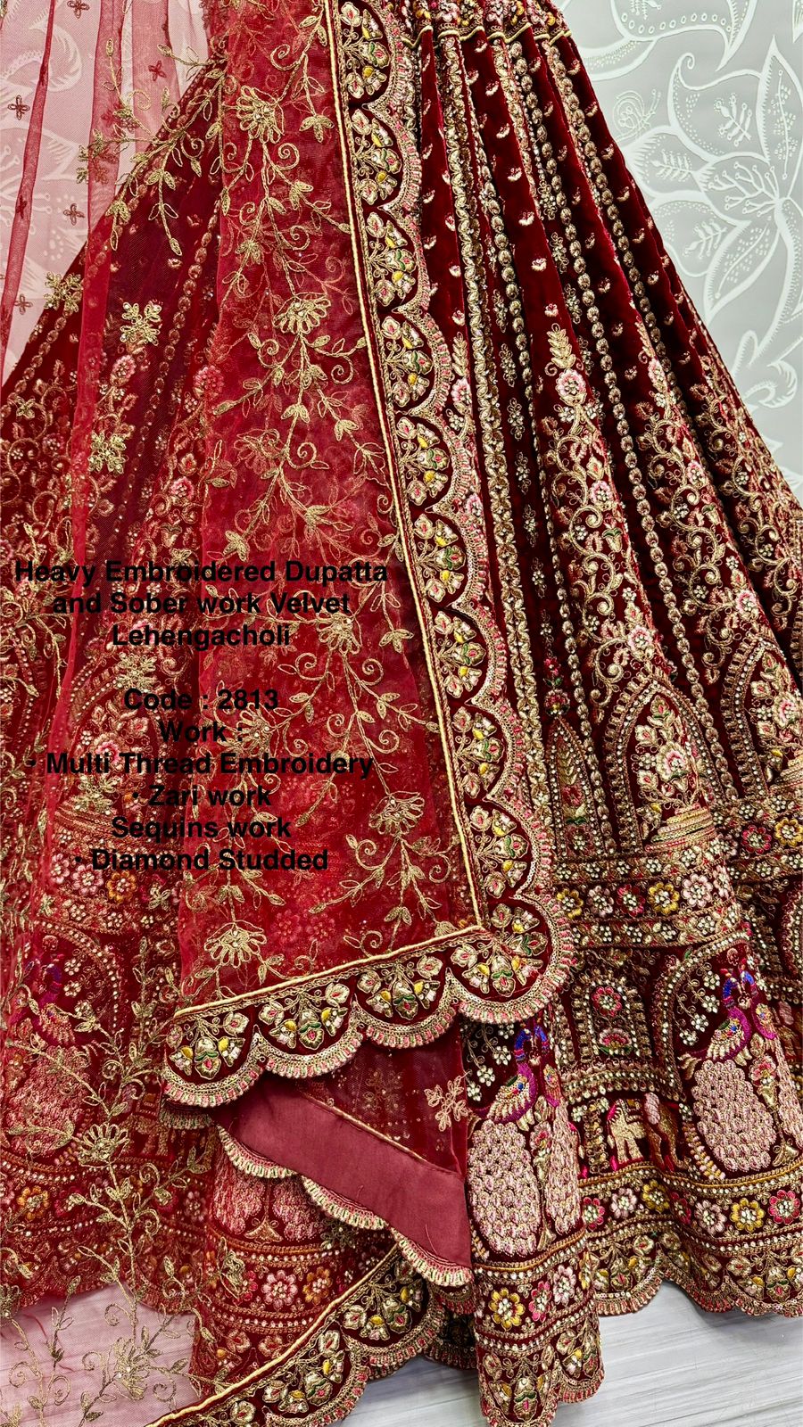 Maroon Colour Bridal Silk Lehenga with Khatali Handwork on Pastel Color Pure base Fabric Crafted Designer Partywear Lehenga Choli