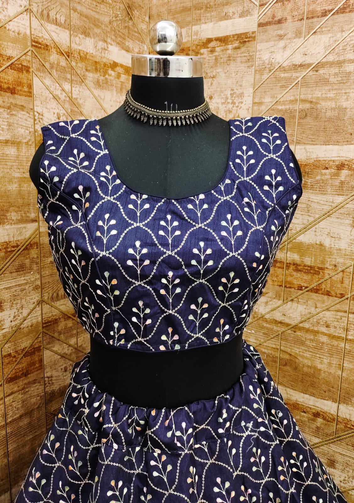 Semi stiched lehenga full stiched blouse Mono Banglore fabric with embroidery work