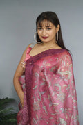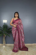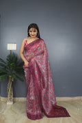 Pure soft organza silk saree with all over beautiful kalamkari prints and beautiful embroided pallu with elegant border all over saree with work blouse