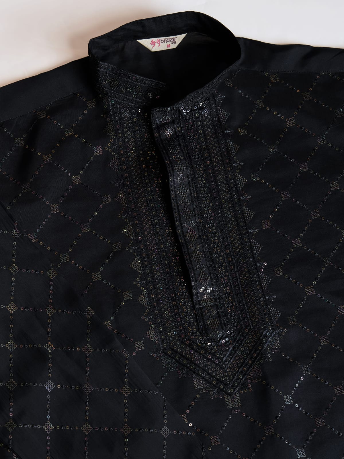 Black Colour Viscose Silk Heavy Thread Work Kurta Payjama